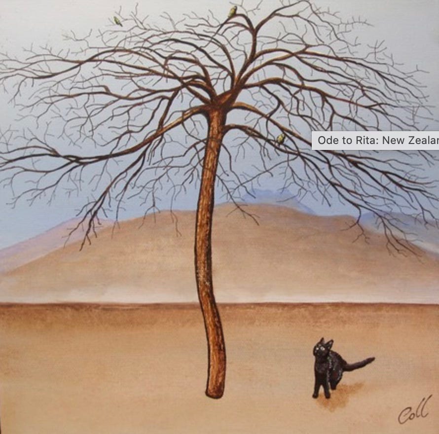 I wrote the above piece yonks ago for Rita Angus: New Zealand Modernist and had been thinking of it lately and of course of Rita’s wonderful tree painting. Look at the real deal here in Te Papa’s collection. I also found these two tribute works by New Zealand artist Collette Fergus…thought I’d share it all for Christmas! Tis the season, etc.